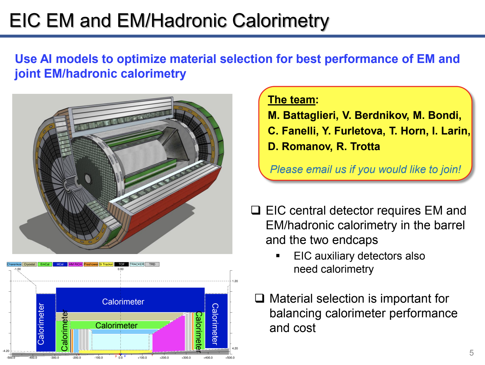Use AI models to optimize glass/crystal material selection in "shared rapidity regions" for best performance of EM and joint EM/hadronic calorimetry.