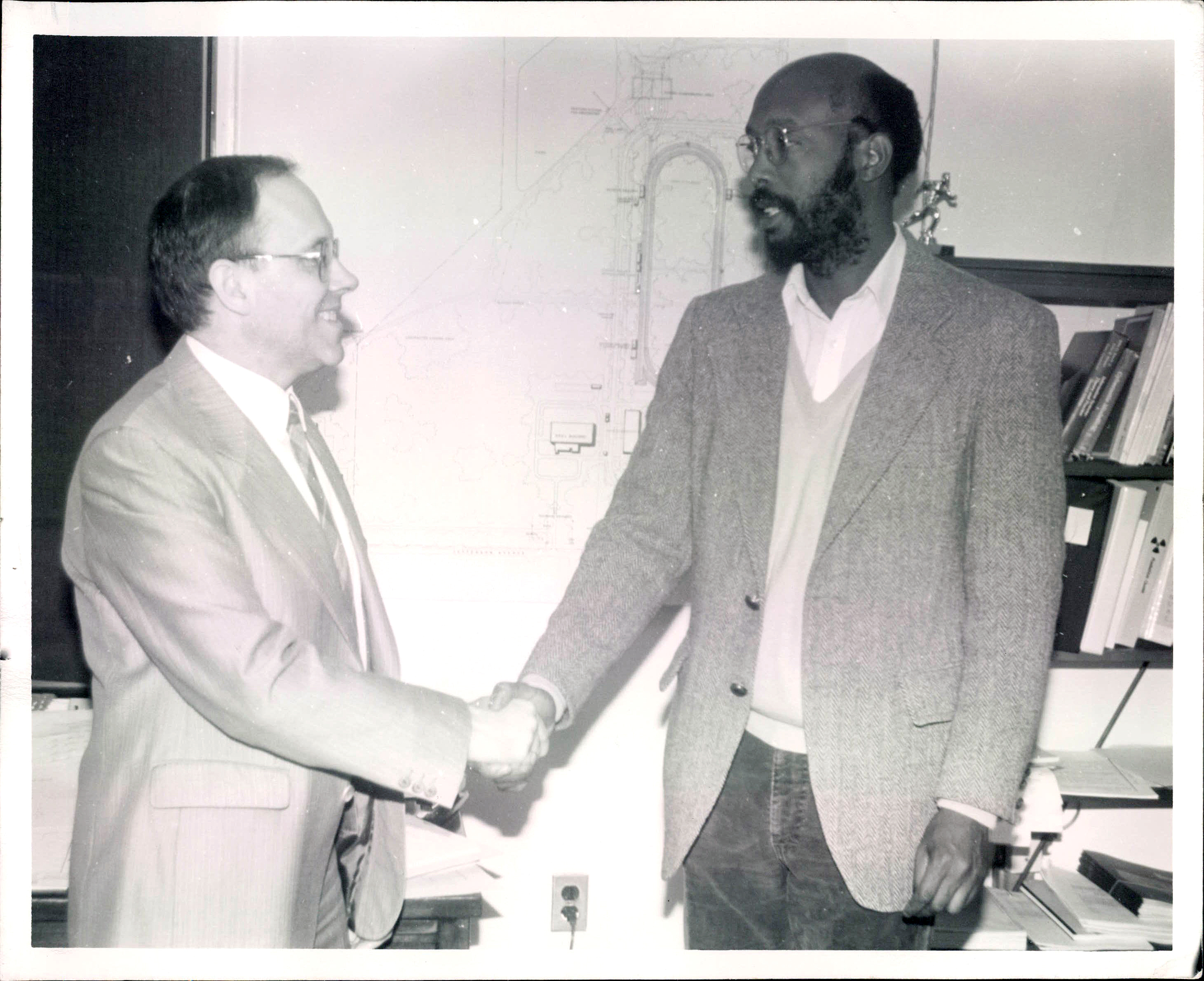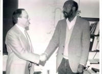 Pictured on the left: The HUGS program began in May of 1985 with a handshake between Jean Mougey (on the left) and Warren Buck.
