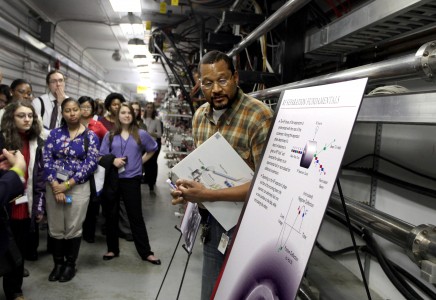 Nearly 150 college students representing 35 colleges and universities from Virginia; North Carolina; Maryland; Washington, D.C.; Delaware and New Jersey participated in a Conferences for Undergraduate Women in Physics event co-hosted by Jefferson Lab and Old Dominion University. On Jan. 16 the group toured Jefferson Lab facilities.