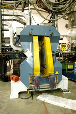 In October 2002, the team was awarded an MRI grant for $441,000 to upgrade BigBite. "The total amount of money of putting this package together is on the order of a million dollars, if you count everything," Lindgren says. The upgrade plan was crafted by Lindgren and Bogdan Wojtsekhowski, a Hall A Staff Scientist and a spokesperson for the neutron electric form factor experiment (GEn).