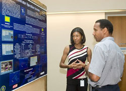 The CEBAF Center lobby was abuzz with activity in early August as the 39 participants in the Lab's summer science education programs showed off their posters and discussed their projects with fellow participants, Lab users and staffers and even proud parents.