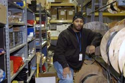 Ferbee oversees JLab's FreeStock, which began as one cabinet in 1997 at the request of Bill Brisiel, Stockroom manager. Over the years the area has grown and now fills a full aisle in the Stockroom. Individuals with purchase accounts may peruse the electronic list of FreeStock items, visit http://esac.jlab.org/stock.html and sign on to the webstock page. At the top of the page is a FreeStock link. The list can also be accessed via db3 on the Lab's computer system.
