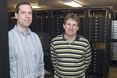 ![]() Andy Kowalski, head of the IT Division’s Computing and Networking Infrastructure group, and Paul Letta, CNI e-mail upgrade effort coordinator, (left to right) stop for a moment in the Computer Center after getting the new e-mail system up and running. There wasn't a lot of love for Jefferson Lab's e-mail system on Valentine's Day. The servers that handle the Lab's electronic missives were overburdened, severing computer users' digital link to the outside world and the office next door. But by noon the following day, a more stable and faster electronic message delivery was in service. The dramatic turnaround was the result of months of planning and preparation. But with the Valentine's Day e-mail collapse, a command decision was made to immediately execute those plans a month early. Paul Letta, Unix systems manager in the IT Division's Computing and Networking Infrastructure (CNI) group and e-mail upgrade effort coordinator, says the old system used a 20-year-old method of storing data. In that system, each user's messages were stored as a single text file. "Every time you got a message or every time you clicked on a message to read, the mail servers would have to go and reread that entire file," Letta says. "Now, if you only had a reasonable-sized inbox or a reasonable number of messages, that's not that big a deal. But we have some account holders at the Lab whose text file is almost two gigabytes, 26 million lines." The new e-mail server software, an open-source package called dovecot, handles files differently. "As dovecot reads the e-mail folders, it creates index files. The next time you want to read a message, it first looks in an index file. It then goes directly to that point in the folder," Letta explains. Fast Facts 80,000-100,000 e-mails arrive from offsite each day 1 in 5000 contains a virus 42 percent of all offsite e-mail is spam Andy Kowalski, who heads the CNI group, says the switch to dovecot has made a huge difference in the amount of work the e-mail servers have to perform. "Before dovecot, the overnight load on the e-mail system was triple what it is now when everybody's here at work. We had all these desktops sitting around overnight doing nothing but saying: Any new mail? And this would happen over and over and over," he says. "The old system wasn't a bad system, it had just become inadequate to deal with the amount of data being sent through our e-mail system." Before the switch, for example, the e-mail system was transferring up to 100 Megabytes per second over the network, whereas Hall B sends a data stream of up to 25 Megabytes per second when writing experimental data to magnetic tape. Since the switch, the e-mail system transfer rate almost never exceeds 10 Megabytes per second. The switch to dovecot wasn't the only change made in the e-mail system. The CNI group formed a committee of computer experts to tackle the increasing demands of e-mail in mid-2007. Their plan included repurposing four other computers to replace the older servers; requiring that all e-mail clients be configured to access e-mail using the same method (a common protocol called IMAP); centralizing all computer users' e-mail inboxes; and finally, switching over to the dovecot software. Many of the changes had already been completed in preparation for the switch to dovecot, and a dovecot test server was undergoing extensive testing. The plan to release dovecot in the spring was on track. "We thought that deploying dovecot in March/April was actually going to give us enough time to do this before people really noticed the strain on the e-mail system," Kowalski notes. When the e-mail servers began buckling under the strain, the decision was made to switch over to dovecot immediately, before testing was completed. The switch was made the morning of Feb. 15, a Friday. Letta and Kowalski say the switch to dovecot is only an intermediate step in handling e-mail. More changes are needed to ensure e-mail stability. In addition, the CNI group will continue to investigate alternatives in meeting the ever-increasing demand on the e-mail servers. "Many other organizations have already switched over to backend databases to store e-mail. And that would be a giant leap for us. It would also be a costly leap (in the range of $100,000-250,000), and we're not going to do that right now. Paul found a low-cost, intermediate solution," Kowalski says. To help matters, Letta and Kowalski say that there are several things that individual computer users can do to alleviate the stress placed on e-mail servers. These include: - Reduce the size of your inbox, by either deleting or moving mail to individual file folders, especially those items that contain attachments. By Kandice Carter |