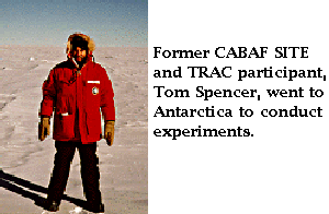 From January 3 to February 5, Spencer worked at the South Pole as a participant in the Antarctic Research Experience (ARE). "The ARE program is run much like CEBAF's Teacher Research Association (TRAC) program. Teachers are assigned to mentors based on their abilities and interests," he says.