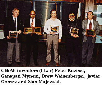 Five scientists were awarded at the ceremony for inventions they created while pursuing CEBAF's fundamental research mission. SURA recently received three patents for these inventions and will share future royalties with the inventors. CEBAF rewards the scientists $500 for each spin-off technology.