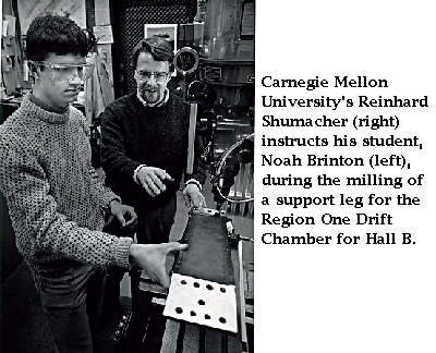 "CEBAF benefits in several ways," says Chair-Elect of the CEBAF User's Board of Directors, Betsy Beise of the University of Maryland Physics Department. Maryland's group manufactured the detector support frames for the Hall A spectrometers and copper-plated many pieces of the Hall C cryogenic target.