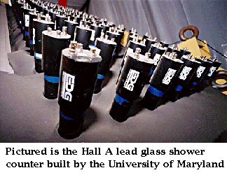 The electronic development group is working to construct summing-amplifier modules for the Hall A lead-glass shower counter. The physics group at Maryland also is constructing and testing the lead-glass shower counter for the Hall A electron spectrometer, the aerogel Cerenkov detector for the Hall C short orbit spectrometer and helping to develop the Hall C cryogenic target controls system. Hoping to use the equipment they have produced and employ what they have learned along the way, physicists at Maryland have submitted a number of proposals for experiments in Halls A and C. In addition, three Maryland students are working on Hall C experiments for their Ph.D. thesis projects.