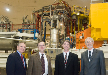 Advisory Committee Sets Direction for JLab's Scientific ProgramOne by one, the dozen scientists filtered back into a conference room at Jefferson Lab, where sheets of paper, coffee cups, blinking laptop computers and thick, three-ringed binders lay scattered across four tables arranged in a square. To one side of the tables stood Michael Pennington, a nuclear physicist from the University of Durham in England. A member of what is known as the Program Advisory Committee 32, or PAC 32, Pennington waited patiently as the other scientists took their seats so he could announce the future experiments that he and fellow committee members had selected to run at Jefferson Lab. "I think the Lab is to be complimented for providing interesting physics," Pennington said as he began his presentation. "One of the nice things about this PAC is that ...we were able to concentrate on the science." The experiments his committee selected were significant not only for the knowledge they will contribute to the understanding of nuclear physics, but also because they will likely be among the first to run at Jefferson Lab after it upgrades its facilities and doubles the energy of its electron beam accelerator to 12 GeV, or 12 billion electron volts. PAC 33 convenes during January The members of Program Advisory Committee 33, chaired by Roy Holt, Argonne National Lab, will meet at JLab Jan. 14-18, to consider 26 new proposals and one letter-of-intent for experiments using presently available CEBAF beams. This will be the last PAC to consider new proposals for running in the "6 GeV era." Twice a year, Jefferson Lab solicits research experiment proposals. The submissions are scrutinized by the Lab’s program advisory committee, which acts as a scientific "jury" and ranks and prioritizes the proposed experiments. The committee is an independent group composed of internationally respected scientists with different areas of expertise. The committee strives to select the very best and most cutting-edge science to run at JLab. Similar review committees exist at other research laboratories in the United States and around the world. During the review process held at Jefferson Lab Aug. 6-8, 2007, members of the committee listened to presentations and reviewed proposals. Coming from France, Italy, Germany, Poland, England and the United States, the committee members brought a diversity of perspectives to the table. They discussed, debated and, finally, winnowed the proposals based on scientific merit and feasibility of success. "They’re all central to the 12 GeV Upgrade program," Pennington said of the experiments selected, "in that they study, essentially, the electromagnetic properties of protons, how the features of the proton reflect the properties of their constituents, their flavor, their spin and all the other properties." Typically, it can take weeks or years to develop and write an experiment proposal, which often are based on ideas that have been around for years but not previously studied, says Ron Gilman, chairman of Jefferson Lab’s Users Group and a physics professor at Rutgers University. The Users Group consists of more than 1,200 scientists, primarily university faculty members, who use the facilities at Jefferson Lab to conduct experiments. Gilman says that submitting a research proposal to a PAC is like submitting an article to a scientific journal. The comments provided by members of the PAC can help those who have submitted proposals to refine their experiments and produce better science. Typically, the proposals are submitted by international collaborations of scientists and other experts. Often a scientist from Jefferson Lab is among the collaborators, because of his or her familiarity with the Lab’s capabilities and equipment. "When a proposal is submitted to PAC," Gilman explains, "the committee members can say it’s a great experiment and they approve it. Or they may say it’s a good experiment but we don’t have any beam time to give you; in that case you’re usually deferred with regret. Or they may decide that this proposal wasn't as interesting as some others, so you’re not approved, but you are welcome to return in the future and make your proposal more compelling." As an advisory group, the committee submits its selections to Jefferson Lab’s director, who makes the final decision. Invariably, the director accepts the PAC’s decisions and the experiments are scheduled. At Jefferson Lab, about 25 to 30 experiment proposals are submitted each year. The PAC 32 reviewed nine proposals and three letters of intent, with five of the proposals approved and three conditionally approved. These experiments will run after the 12 GeV Upgrade is complete. PAC approval begins a lengthy process for those that were selected. For researchers, the wait to start an experiment is routine. At Jefferson Lab, the demand for beam time is extremely competitive because it is the world’s leading facility in the experimental study of hadronic matter. The Lab’s typical backlog of approved experiments is about four years, which is considered efficient for scheduling purposes. The Lab will not allow the backlog to become too long, because it can threaten funding for researchers, particularly for college students and professors. Of course, for this particular PAC, which focused on experiments to run after the 12 GeV Upgrade is complete, the wait is likely to be seven to 10 years. The funding at Jefferson Lab comes primarily from the U.S. Department of Energy’s Office of Science which provides the funds for operating the accelerator and the support for setting up and running experiments including funds to fabricate experimental instrumentation. In conjunction with DOE, the National Science Foundation and other countries provide funds to support university research groups for running experiments at JLab and related experimental equipment. Once scheduled, installed and calibrated, a typical experiment at Jef
