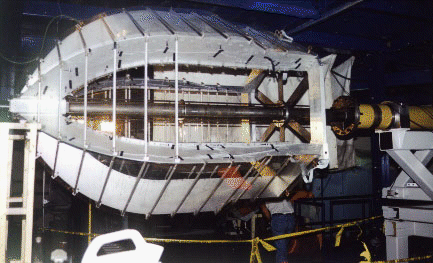 The Carnegie-Mellon and University of Pittsburgh collaboration has delivered a prototype drift chamber for Hall B. It is being installed to confirm that its design meets size specifications. It will fit within a space in Hall B's superconducting magnet. The design of the drift chamber is unique in that it uses less external structure to support it than previous designs. Instead, the Hall B drift chamber relies on a system of rods and wires to maintain proper tension and structure of the unit. The permanent drift chamber is currently under fabrication and will be ready for installation next summer.