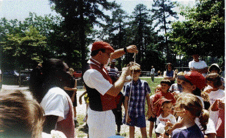 Perfect picnics are hard to come by, but the CEBAF 1995 Family Picnic on May 13th came close. Hot, sunny weather, lots of tasty food, fun children's activities, and plenty of good company made for a most enjoyable day. The grills were lit early that morning and burned most of the day with dedicated staff members at the helm. A moonwalk, traveling entertainer, face painting, streamer sticks, free popcorn, snow cones and cotton candy added to the festivities. There was also some competition on the volleyball court and softball field. And of course, a CEBAF News photographer caught it all on film.