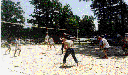 What picnic would be complete without volleyball? Randy Wojcik (Physics) is ready to spike the ball during this heated match.
