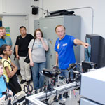 ![]() Staff Scientist Silviu Covrig has been selected for a Department of Energy Office of Science Early Career Research Program award. He plans to use the award to establish a research program at Jefferson Lab to improve the performance of liquid hydrogen targets, which are standard research tools at the lab. Born in the small Romanian town of Toplita, Jefferson Lab Staff Scientist Silviu Covrig has always been interested in the natural world and how things work. His innate talent and equal passion for physics shined through as early as 8th grade when his test scores, which were among the highest in his country, thrust him into a National Physics Olympiad. He was the first student from his city to do that. Throughout high school, he made it to the National Olympiads each year. In his senior year, he was one of 12 senior students who spent six weeks in the Romanian physics training camp that he describes as ''grueling,'' going through additional testing and exams. That early interest and experience has paid off handsomely. Covrig, now a staff scientist in Jefferson Lab's Experimental Hall C, has been selected for a Department of Energy Office of Science fiscal year 2012 Early Career Research Program award. The program, now in its third year, supports the development of individual research programs of outstanding scientists early in their careers and stimulates research careers in the disciplines supported by the DOE Office of Science. His award is valued at $500,000 each year for five years and will begin on July 1. He plans to use the award to establish a research program at Jefferson Lab to improve the performance of liquid hydrogen targets, which are standard research tools at the lab. "I was actually surprised to find that there is such a program as this," Covrig said of DOE's Early Career award. "I think this program, which is relatively new, is an excellent idea. It provides seed money to try to develop new technologies and push the boundaries of existing ones." Covrig graduated in 1995 with his undergraduate degree in Condensed Matter from the University of Bucharest and received his master's degree a year later from the same university. During that time, he worked as an undergraduate research assistant at the university and at the Institute for Opto-Electronics in Bucharest. He was accepted at Cal Tech for his graduate work and came to the United States for the first time in 1997. Pasadena, and Cal Tech's campus in particular, he recalled, seemed like a visual paradise, truly a botanical garden. "They really take care of their students at Cal Tech," he noted. "It's a very intensive school, but it was very enjoyable for me." While there he met the woman who would become his wife, Livia Marica. She was doing her residency in anesthesiology and is now a cardiac anesthesiologist with Virginia Anesthesiology and Perioperative Care Specialists (VAPCS). She works at Bon Secours Maryview Hospital in Portsmouth. The couple lives in northern Suffolk with their son, Alexander. During his time at Cal Tech, Covrig worked as a graduate research assistant, where he helped in building and commissioning the 1000 Watts (W) liquid hydrogen/deuterium target for the G-Zero (G0) experiment in the Jefferson Lab's Hall C. He was also a collaborator on two electron-scattering parity violation experiments, SAMPLE at MIT-Bates and G0 here. He received his Ph.D. in Experimental Nuclear Physics from Cal Tech. His thesis subject was the G0 experiment in forward angle mode; and his thesis advisor, Robert McKeown, is now Jefferson Lab's deputy director for science. After finishing his Ph.D. work at Cal Tech, it was off to chilly New Hampshire, where Covrig worked as a research scientist at the Center for Xenon Imaging. In collaboration with F. William Hersman, he developed technology for producing hyperpolarized 129Xe gas with the highest throughput in the world, and developed novel human lung imaging techniques based on magnetic resonance. Covrig came to Jefferson Lab in 2008 as a postdoc, where he was involved in designing, building and commissioning the 2500 W liquid hydrogen target for the Q-weak experiment in Hall C. The following year, he accepted a full-time position here. His Early Career Research proposal, titled "Computational Fluid Dynamics Facility to Support Targets for the 12 GeV Program at Jefferson Laboratory," seeks to establish a computational fluid dynamics (CFD) research program at the lab to investigate and standardize the performance of liquid hydrogen targets for nuclear physics experiments. The abstract reads: "Liquid hydrogen has long been a standard target material for fixed-target nuclear physics experiments at accelerator facilities worldwide. In the near future, experiments using very high intensity electron beams will require the removal of beam-deposited heating of up to an order of magnitude beyond that which has been achieved with previous targets. Through CFD simulations, it should be possible to reduce target boiling effects by more than an order of magnitude which will be crucial for the reduction of systematic errors in planned high beam intensity experiments. In this CFD research program, a range of experimental target designs will be simulated and optimized, including the 5000 W target envisioned for the ultra-high precision MOLLER (Measurement of a Lepto-Lepton Electroweak Reaction) experiment at TJNAF, which proposes a precision study of high-intensity polarized electron-electron scattering. This CFD research program will also analyze safety issues and will develop a standard procedure for operating liquid hydrogen targets in the safest manner feasible." "I am delighted that Silviu has been selected for this prestigious award. It is remarkable how he has built upon his work as a graduate student to design the Q-weak hydrogen target," McKeown said. "That target has demonstrated vastly improved performance over previous designs and was absolutely critical to the success of