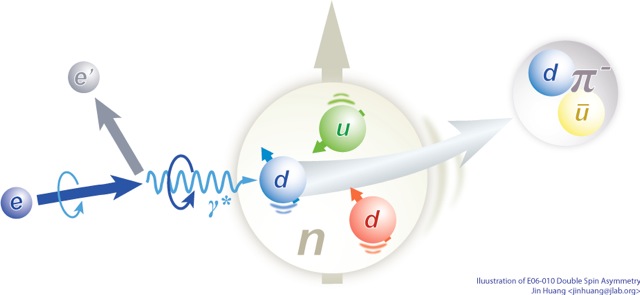Scientists Spun Up Over Neutron Result: Tricky Spin Experiment Yields Evidence of New Quark Behavior![]() A new measurement on spinning neutrons conducted at Jefferson Lab provides the first indication of a new type of behavior of moving quarks inside the neutron. The measurement indicated a partial alignment of quark spin perpendicular to the neutron's direction of spin. This phenomenon can be pictured as a group of passengers lying down sideways on a Merry-Go-Round as it spins. This transversal helicity can only be observed if the quarks are moving orbitally inside the neutron. The result was recently published in Physical Review Letters. Quark orbital motion has long been suspected to be present in neutrons as well as in protons, which together make up 99 percent of the mass of the visible universe. In simple terms, quark orbital motion can be thought of as movement, such as the swirling movement of a spinning top as it meanders across a flat surface. Jin Huang is a postdoctoral associate at Los Alamos National Laboratory and the lead author on the scientific paper. The paper was based on the research he performed for his Ph.D. thesis at Massachusetts Institute of Technology. He says the difficult measurement was made possible by an advanced target. "Jefferson Lab has this unique facility with a high-energy polarized electron beam and a state-of-the-art polarized helium-3 target, and this target is an indispensable instrument for our measurement," he says. The target is a mix of old-world craftsmanship and cutting-edge precision. The vessel that holds the rare helium-3 gas is crafted of hand-blown glass. Surrounding the glass target is a network of lasers, magnets and other devices that comprise the target system. The target system polarizes, or sets the nuclei of the helium-3 spinning in a preferred direction, and flips that polarization to the opposite direction every 20 minutes. What makes helium-3 an excellent target for accessing the neutron is its makeup. The nuclei inside helium-3 contain one neutron and two protons. Set the nucleus spinning, and the two protons adopt opposite spins, mostly canceling each other out (spinwise). That leaves the sole neutron spinning in the same direction as the entire helium-3 nucleus. "The target provides a transverse polarized neutron – a neutron which is polarized perpendicular to the direction of the electron beam," Huang explains. Huang and his colleagues bombarded the neutrons with polarized electrons from JLab's Continuous Electron Beam Accelerator. The high-energy electrons penetrated deep inside the neutron, striking one of its quarks. Precision detector systems observed the departing electrons, as well as the remnants of the struck quarks as sub-atomic particles, such as negative pions (composed of an anti-up quark and a down quark). The experimenters counted these negative pions as they flipped the polarization of the neutrons and of the beam electrons. Slightly different numbers of the negative pions were seen when the neutron's spin direction was flipped from up to down, demonstrating a behavior of the quark's transversal helicity, i.e. quarks have arranged their spin partially in the sideways direction. "We found indications that within the spinning neutron, the quark has the probability to have its spin aligned sideways. That's a new type of behavior for quarks moving inside the neutron, which was unveiled by evidence from our measurement for the first time," Huang says. "The quarks must not just sit in the middle of the neutron, they must be moving around in some kind of angular motion. In simple words, we found that the quarks are milling around in a circle while some of them are pointing their heads sideways" explains Xiaodong Jiang, a staff scientist at Los Alamos National Laboratory and co-spokesperson for the experiment. The success of this and other recent experiments has inspired a rich program of future experiments to further explore transversal helicity in the neutron with much higher precision and larger kinematic coverage at Jefferson Lab following the upgrade of its CEBAF accelerator to 12 GeV. The experiment was performed in Jefferson Lab's Hall A in the fall of 2008. More than 110 scientists from more than 35 institutions and 10 countries collaborated to perform the experiment, which was supported by the Department of Energy and the National Science Foundation. The paper for this experiment is posted at: Users Group Announces Poster Contest WinnersThree young scientists were recognized at the end of the 2012 Users Group Poster Competition held in conjunction with the Jefferson Lab Annual Users Group Meeting and Workshop in early June. When the results were in, it was a tie for first place: Zachary Brown, from The College of William and Mary, and Erin Seder, University of Connecticut, each received a prize of $750. Don Jones, University of Virginia, received third place and a prize of $250. Twenty-three abstracts were submitted for the 2012 Users Group Poster Competition. The posters were judged on the quality of the poster, the presenter's command of the subject matter, and the overall impression of the poster and the presentation. Judges for this year's poster contest were Robert Michaels, JLab; Alexandre Deur, JLab; Steve Wood, JLab and Carl Carlson, The College of W&M. ![]() Zachary Brown, The College of William and Mary: Charmed Bottom Spectroscopy from LQCD