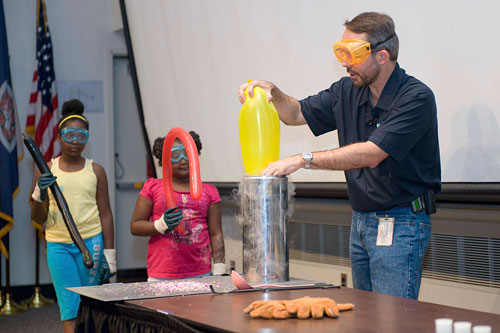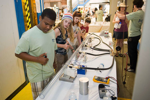 These photos were taken at Jefferson Lab's 2010 Open House. The event was attended by 7,000 visitors. Hundreds of lab employees and visiting researchers volunteered to spend the day talking to the public about their research and the capabilities provided at the lab.