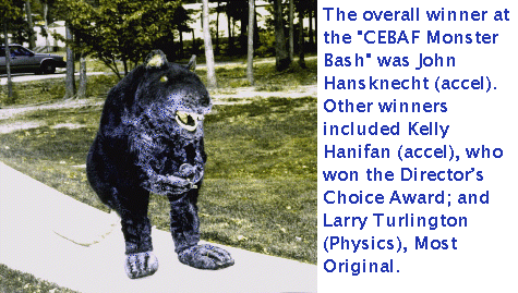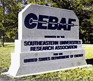 CEBAF finally has a sign to let the public know what exactly is hidden in the woods off of Jefferson Avenue. The new sign consists of a large, gray slab of granite emblazoned with "CEBAF-Blue" lettering. It was designed by Plant Engineering's Christine Snetter and a private firm, Sign Media. Landscaping and lighting are set to be installed around the sign before the Christmas break. "The sign will not only serve as a marker to the main entrance of the facility, but also as an answer to the public's two basic questions about CEBAF: 'What does CEBAF stand for and where is it?' " says Snetter.