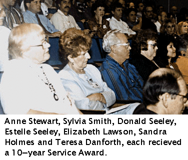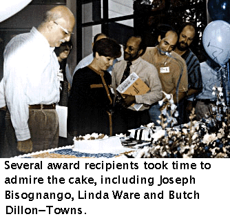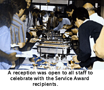 "It is with great satisfaction I acknowledge today, all of you who have contributed so much to CEBAF. Thanks to you and your colleagues we have reached milestone after milestone and are now ready to produce important science for our nation. I salute you all," says Hermann Grunder, CEBAF Director, in congratulating the staff members who have served five and 10 years at CEBAF. On November 1st, CEBAF celebrated these staffers and their collective achievements. What follows is a list of the honorees and photos from the awards ceremony.