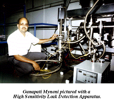 Myneni already has two patents for designing a cryogenic liquid level measuring apparatus and a high-sensitivity leak detection apparatus. His third invention has been approved. The invention which he co-created with Peter Kneisel, also of the Accelerator Division, concerns the use of metal sponges in the cryosorption pumping of hydrogen and helium in liquid-helium cooled clean beam line vacuum systems.