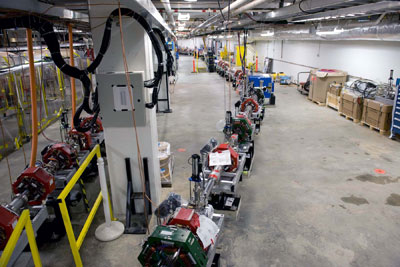 Somewhere over the rainbow of visible light is an untapped goldmine of research potential, where energy, novel materials and environmental research are possible. That goldmine may soon be open to researchers using Jefferson Lab's Free-Electron Laser. The FEL, long known for its high-power beams of infrared laser light, has produced its first beams of ultraviolet light. On Aug. 31, the FEL delivered more than 50 watts of ultraviolet light. "This is the realization of years of hard work by our machine designers and operators," said George Neil, associate director of the FEL Division. "It builds on the Free-Electron Laser's history of innovation." This newest feat opens a new band of the electromagnetic spectrum for experiments. The spectrum separates all the colors of light into bands by wavelength. The FEL was originally commissioned as an infrared laser and is also a prolific source of terahertz light. Together, the infrared and terahertz wavelengths stretch from 1 millimeter to 700 nanometers. Just above these is the visible band: the familiar rainbow consisting of red, orange, yellow, green, blue, indigo, and violet. On the other side of the visible is ultraviolet.... more |