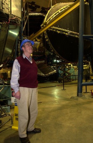 Jefferson Lab staff scientist Bernhard Mecking with the CEBAF Large Acceptance Spectrometer (CLAS) in Hall B.