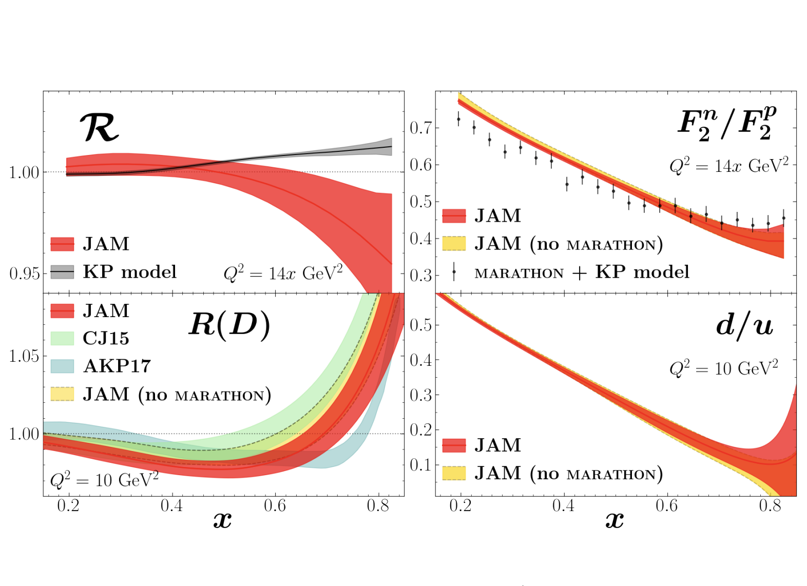 Recent highlights from JAM analyses of unpolarized proton PDFs (click images for enlargement).